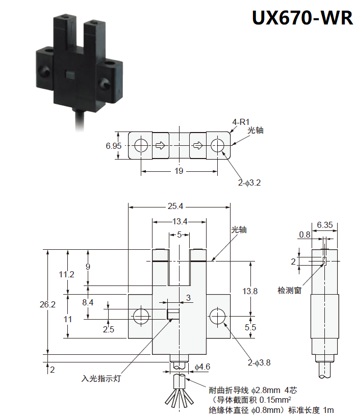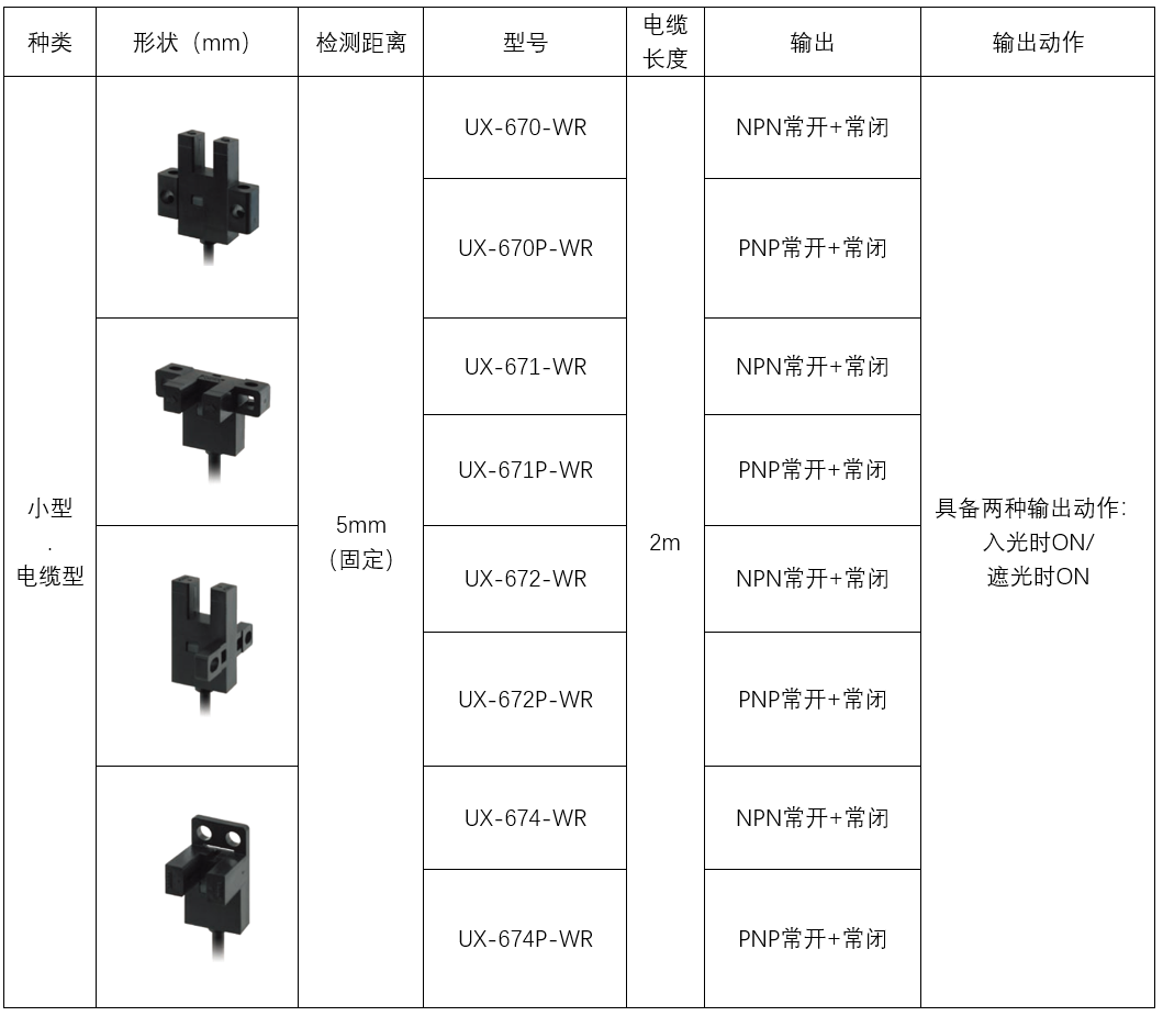 新款UX67系列帶線槽型光電傳感器