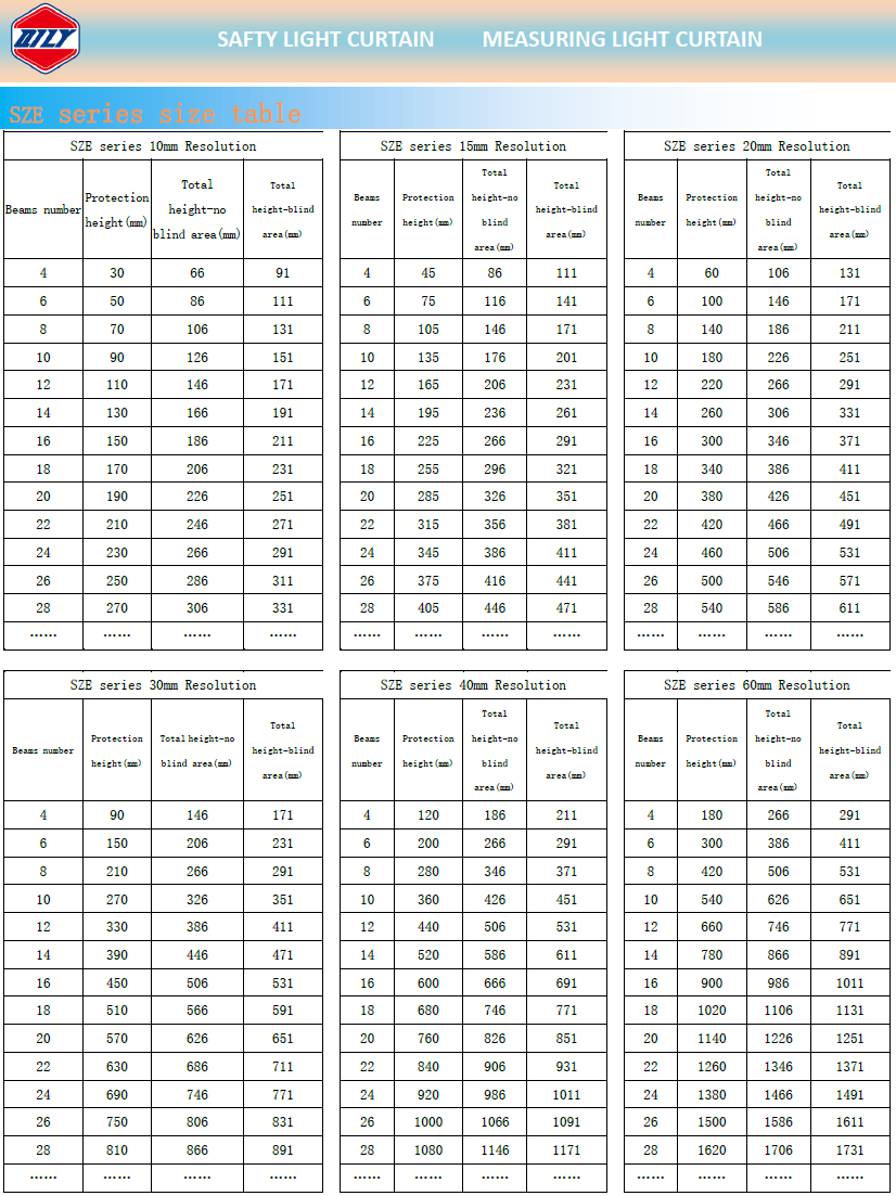 SZE ultra-thin safety light curtain safety grating – technical specification overview