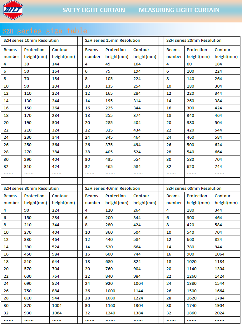 The SZH series of waterproof and safety light curtains are designed with a sturdy and clean shape to ensure that the product meets the functional requirements. The SZH series waterproof safety light curtain is specially designed for operation protection applications. It can be started immediately after power-on, without a lot of configuration work, and its detection range can be precisely adjusted according to the application needs. In addition, the safety light curtain has the following features: