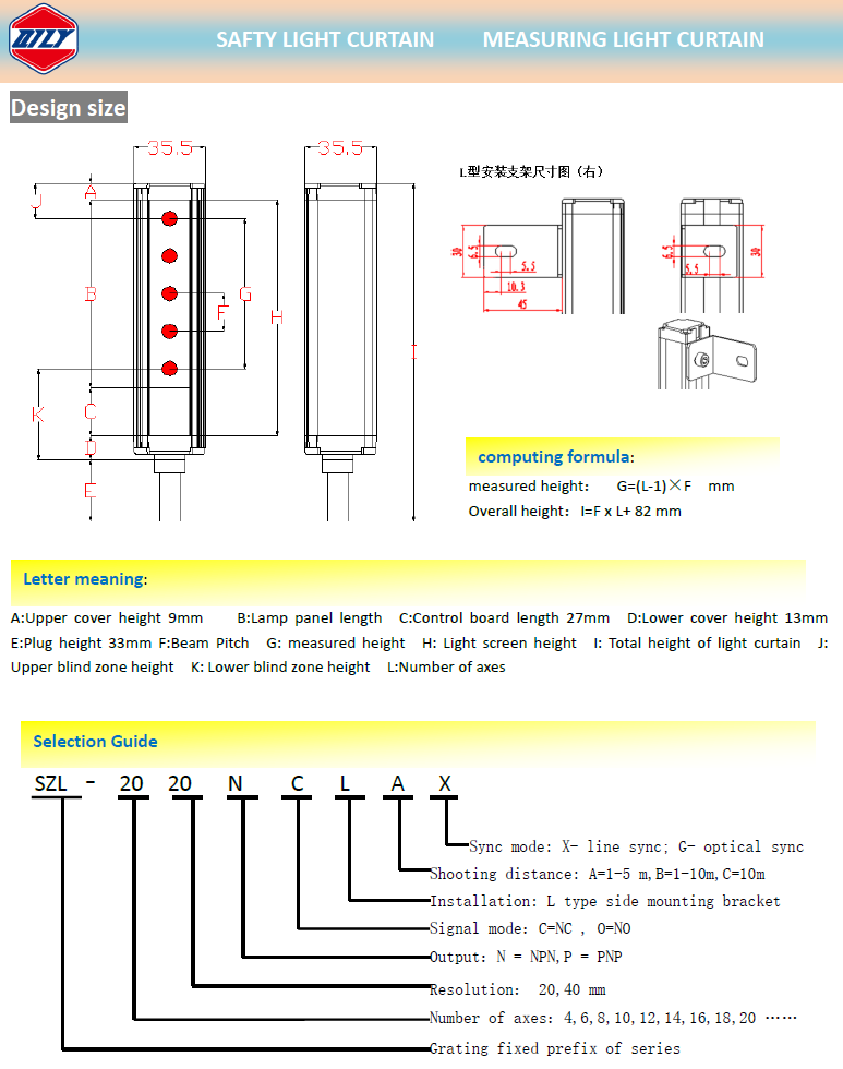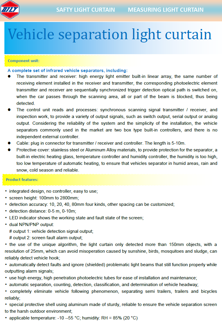 SZL series Vehicle separation light curtain Grating, cross-sectional area: 35*35mm