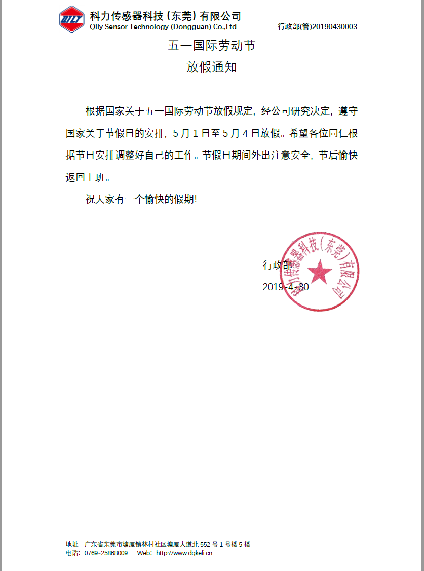 關(guān)于本公司五一勞動(dòng)節(jié)放假通知