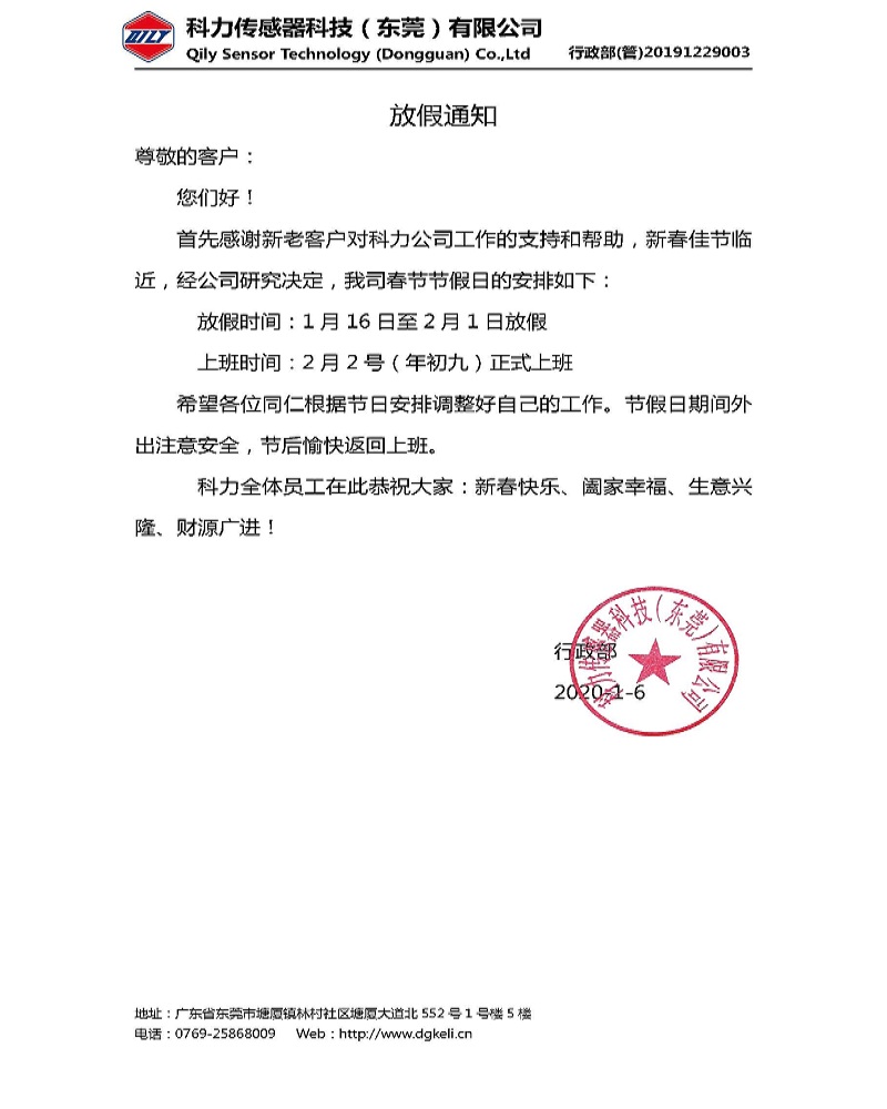 有關(guān)本公司2020年春節(jié)放假通知