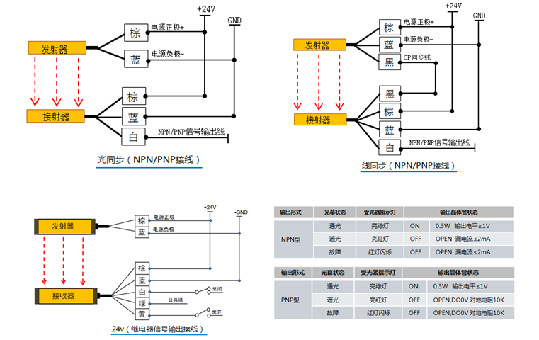 當然根據使用的需求不同,選擇適合的NPN/PNP的常開和常閉。一般情況下,安全光柵,保護人用常閉,檢測物體用常開。通常我們國內一般默認的就是NPN常閉保護人的安全。