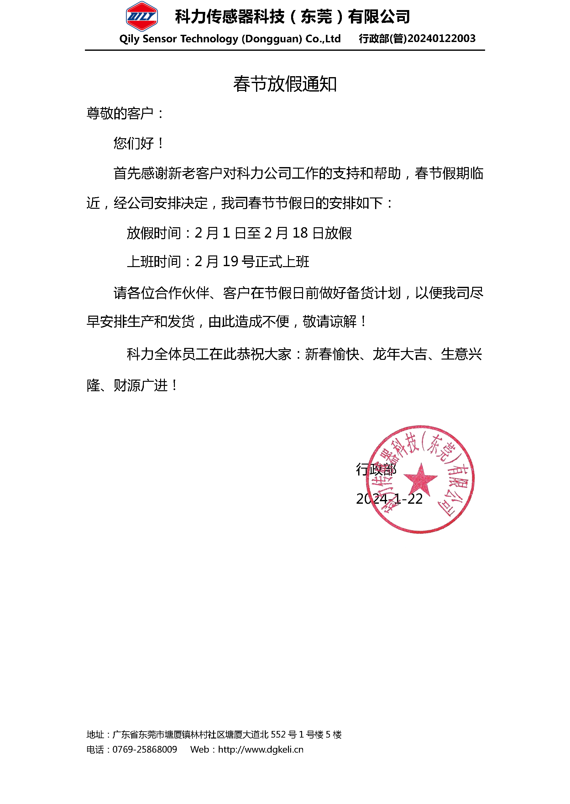 有關(guān)我司2024年春節(jié)放假通知2024-01-25