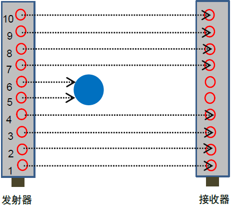 應用于八位二進制輸出,遮擋不同數(shù)目的光束時,光幕按照八位二進制方式輸出;