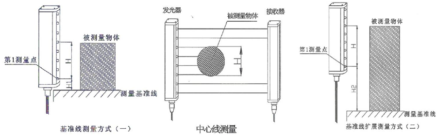 根據(jù)不同物體的尺寸、形狀可以確定不同的測量方式,測量光幕安裝方式主要有三種: