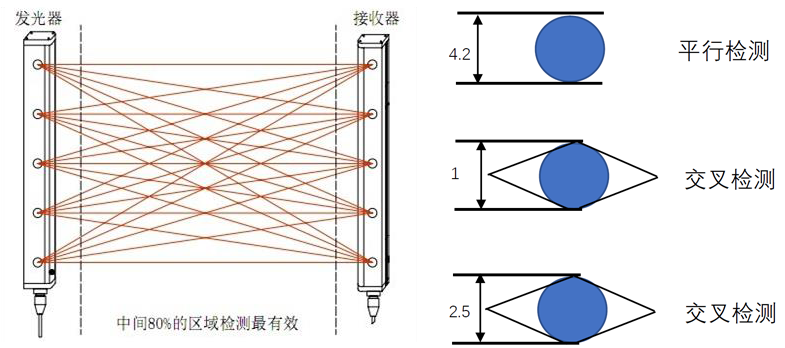 應用于孔洞檢測時,光幕任意一束及以上光束通光時光幕才有信號輸出;