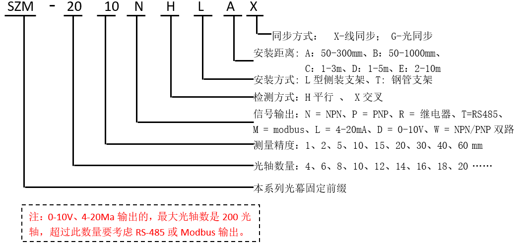 1、開關(guān)量輸出:NPN/PNP通過程序設定遮擋不同數(shù)目的光束時,光幕才有信號輸出;