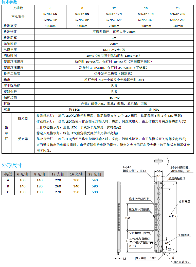 SZ-NA超薄型區(qū)域光幕– 技術規(guī)格綜述