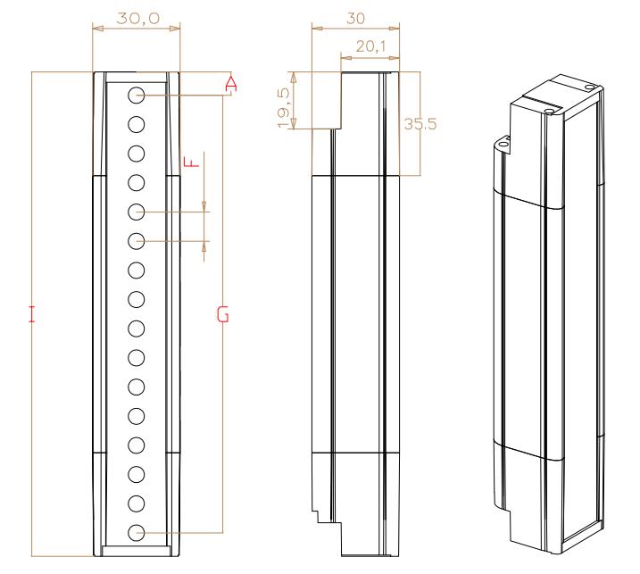 G:保護(hù)高度(mm) =(光軸數(shù)量-1)*F I:光柵長度(mm)=G+A*2 A:盲區(qū)(mm) =F/2+3