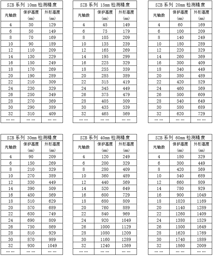 ■ 防護(hù)區(qū)域高度:60 mm至2000 mm